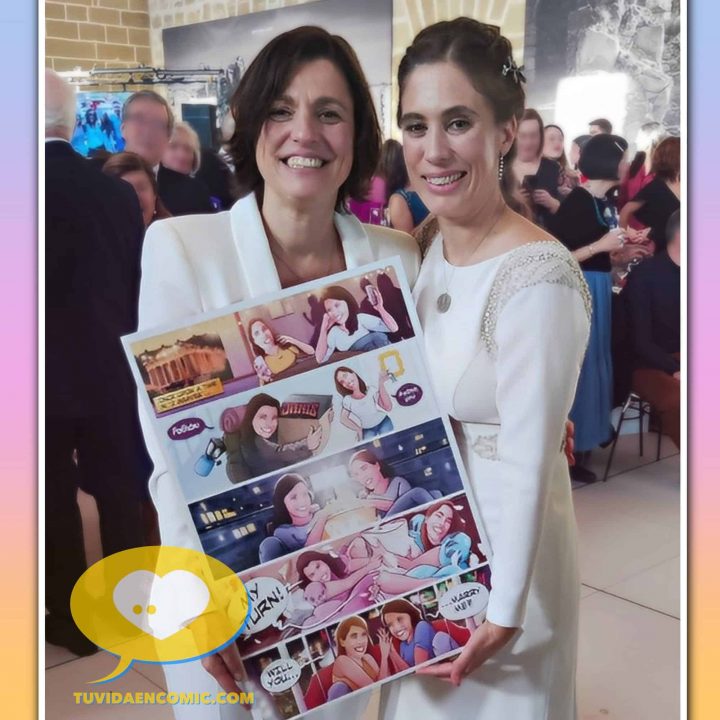 Estoy seguro de que te ha tocado preguntarte qué regalar en una boda a tus mejores amigas, teniendo que ser un regalo original que nunca olviden, lleno de amor… pues aquí tienes la solución: un cómic personalizado muy especial: el cómic de nuestra vida juntas. Su Historia de amor en viñetas.