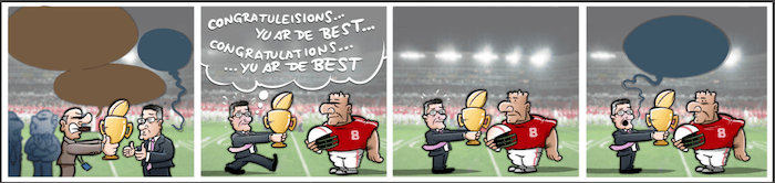 Como descubriréis a continuación, esta vez no se trata de una ilustración o caricatura. El diseño lo componen cuatro tiras cómicas (al estilo Mafalda o Gardfield), que nos cuentan cuatro anécdotas de la vida de su pareja.