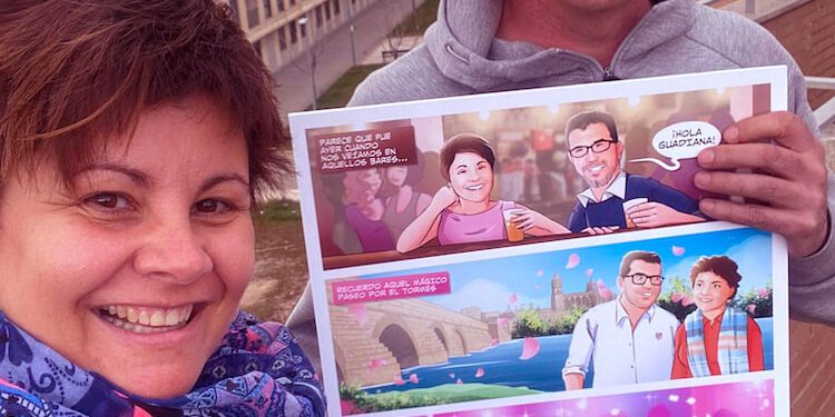Cada una de las ilustraciones está realizada cien hecho a medida, mostrando etapas clave y anécdotas de la historia de esta pareja, todo en formato cómic. Un regalo muy emocional, artístico, que no olvidarán.