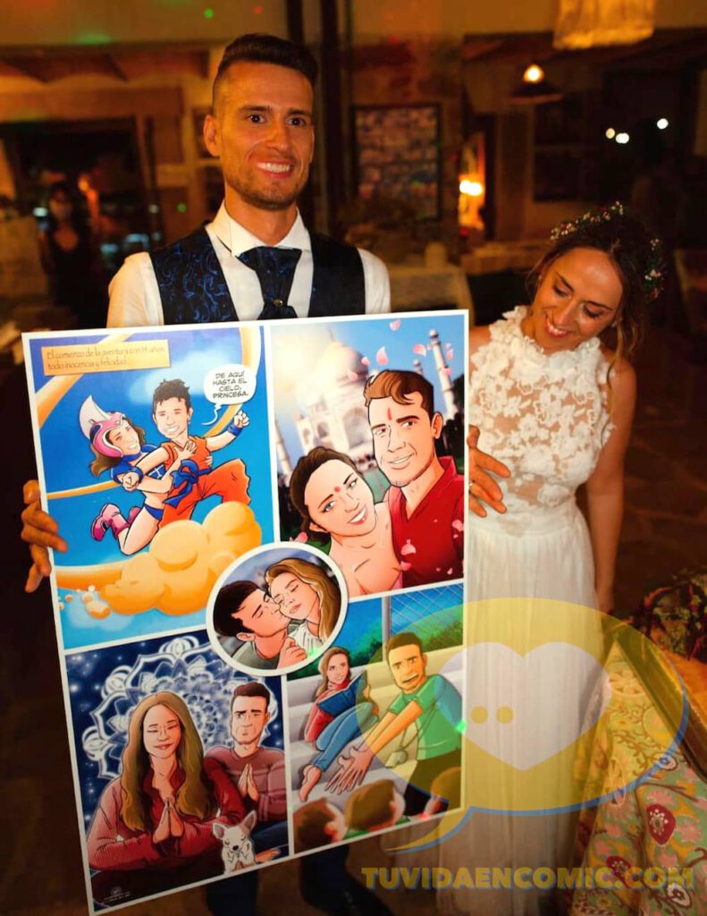 ¿Y tú? ¿Quieres un Regalo de boda tipo cómic, un Regalo de aniversario original, un Regalo del día del padre, de despedida por jubilación… como este? ¿una ilustración / caricatura personalizada, cómic personalizado o una composición de ilustraciones como los que ves en esta web? ¿Quieres transformar TU VIDA EN CÓMIC?