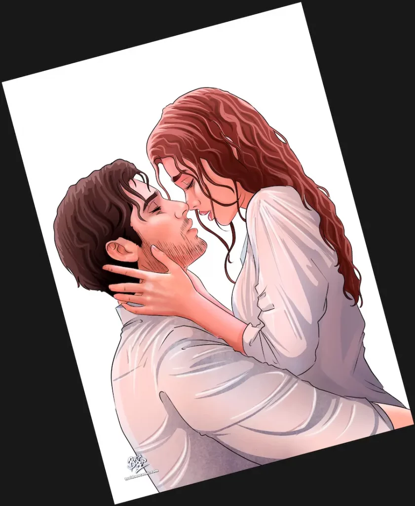 - El toque final: Lo que realmente dio vida a la obra fue capturar la intensidad de ese beso. En la ilustración personalizada, la belleza de la escena no solo está en el beso, sino en la promesa que lleva consigo.