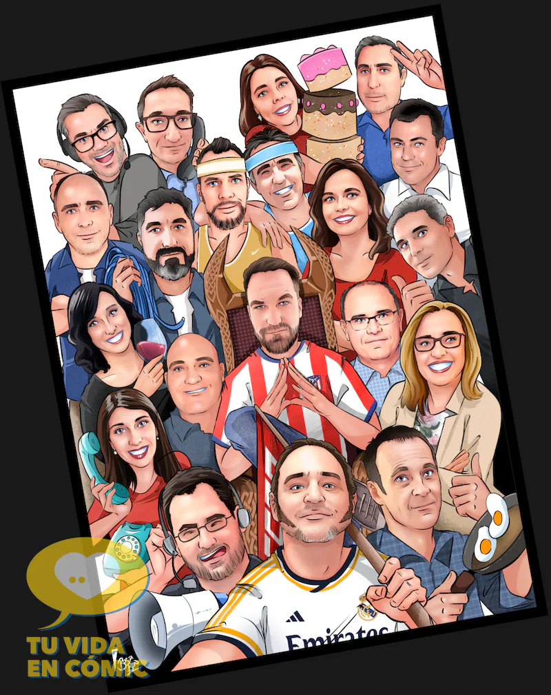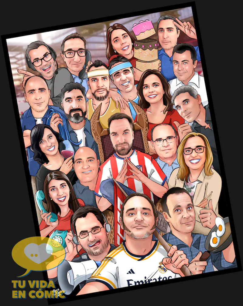 Y ojo, estamos en Diciembre: Este formato es también una idea brillante como Regalo de Navidad de Empresa. En lugar de la típica cesta, ¿por qué no regalar al jefe o al empleado del año una ilustración con su equipo?